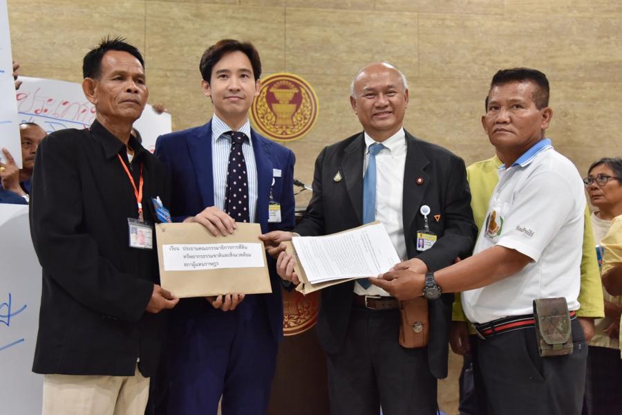 | วันพฤหัสบดีที่ ๑๖ มกราคม ๒๕๖๓ เวลา ๑๓.๒๐ นาฬิกา ณ จุดแถลงข่าว ชั้น ๑ อาคารรัฐสภา เกียกกาย นายพิธา ลิ้มเจริญรัตน์ ประธานคณะกรรมาธิการที่ดิน ทรัพยากรธรรมชาติ และสิ่งแวดล้อม และ พล.ท.พงศกร รอดชมภู ประธานคณะกรรมาธิการความมั่นคงแห่งรัฐ กิจการชายแดน ยุทธศาสตร์ชาติ และการปฏิรูปประเทศ ร่วมกันรับยื่นหนังสือจากนายชาตรี เขียนโพธิ์ ตัวแทนประชาชนผู้เดือดร้อน จาก จ.สระแก้ว จำนวน ๒ เรื่อง คือ ๑. การพิจารณาแนวทางแก้ไขปัญหาความไม่มั่นคงในสิทธิที่ดินทำกินของประชาชนในพื้นที่เขตเศรษฐกิจ พิเศษ จ.สระแก้ว ท้องที่ตำบลป่าไร่ อำเภออรัญประเทศ จังหวัดสระแก้ว ๒. ขอคัดค้านการขอใช้พื้นที่ของกรมป่าไม้โดยกองทัพบกตามแนวชายแดนไทย กัมพูชา เนื่องจาก ทั้ง ๒ ประเด็นส่งผลต่อชีวิตและความเป็นอยู่ของประชาชนในจังหวัดสระแก้ว ประชาชนไม่มีความมั่นคง ในที่ดินทำกินและที่อยู่อาศัย จึงขอให้คณะ กมธ. ช่วยเหลือ ด้านนายพิธา ลิ้มเจริญรัตน์ และพล.ท.พงศธร รอดชมภู กล่าวภายหลังรับหนังสือว่า ในฐานะ ส.ส. และ กมธ. จะนำเรื่องดังกล่าวเข้าสู่กระบวนการของรัฐสภา ไม่ว่าจะเป็นการปรึกษาหารือในการประชุม สภาผู้แทนราษฎร การตั้งกระทู้ถามคณะรัฐมนตรี การตั้งคณะกรรมาธิการวิสามัญเพื่อศึกษาข้อพิพาทเรื่องที่ดิน ระหว่างกองทัพกับประชาชน และใช้กลไกของคณะกมธ. ในการทำงานร่วมกันของ ๒ กมธ. เพื่อร่วมกันแก้ไข ปัญหาความเดือดร้อนให้กับประชาชนอย่างเร่งด่วน โดยจะได้เชิญผู้ที่เกี่ยวข้องมาหารือร่วมกัน และหาทางออก ให้ประชาชนสามารถใช้พื้นที่ร่วมกันกับกองทัพ และที่ดินของรัฐได้อย่างสงบสุข