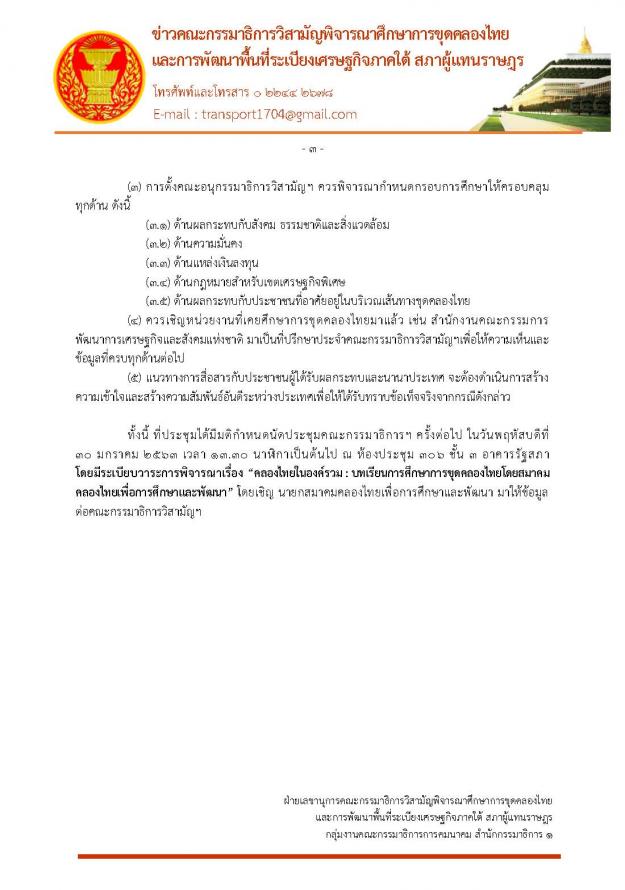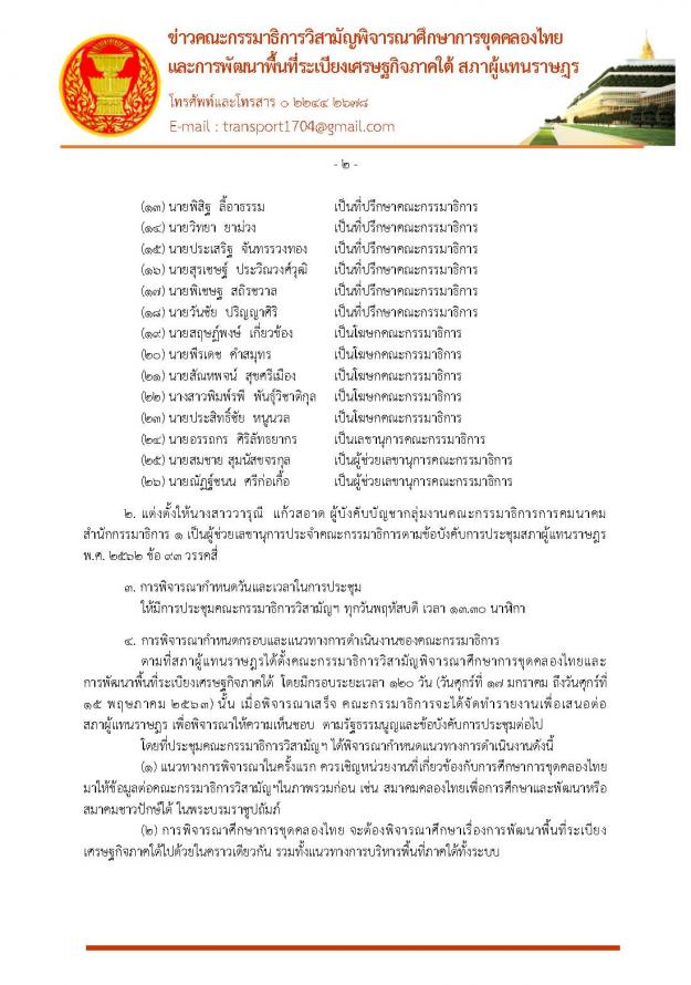 นายสัณหพจน์ สุขศรีเมือง โฆษกคณะกรรมาธิการวิสามัญพิจารณาศึกษาการขุดคลองไทย และ