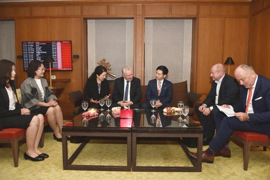 นายอิสระ เสรีวัฒนวุฒิ สมาชิกสภาผู้แทนราษฎร และนางพรพิศ เพชรเจริญ รองเลขาธิการสภาผู้แทนราษฎร ร่วมให้การต้อนรับ นายอิสวาน ยาคอบ รองประธานรัฐสภาฮังการี และประธานสมาคมความร่วมมือเกษตรกรแห่งชาติฮังการี และคณะ