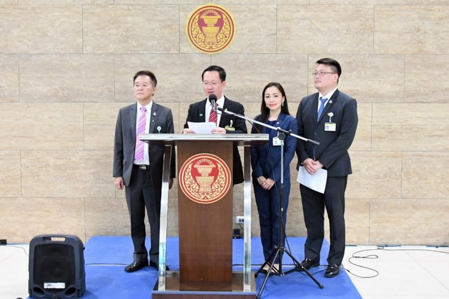วันพุธที่ ๑๙ กุมภาพันธ์ ๒๕๖๓ เวลา ๑๔.๐๐ นาฬิกา ณ จุดแถลงข่าว ชั้น ๑ อาคารรัฐสภา น.ส.ภาดาท์ วรกานนท์ นายอัครเดช วงษ์พิทักษ์โรจน์ และนายกัญจน์พงศ์ จงสุทธนามณี โฆษก คณะกรรมาธิการวิสามัญพิจารณาศึกษาแนวทางการป้องกันและแก้ไขปัญหาฝุ่นละอองขนาดเล็ก (PM ๒.๕) อย่างเป็นระบบ ร่วมกันแถลงข่าวผลการประชุมของคณะ กมธ. วิสามัญฯ โดยที่ประชุม ได้รับทราบสถานการณ์ และรายงานความคืบหน้าเบื้องต้นเกี่ยวกับการดำเนินงานแก้ไขปัญหา ฝุ่นละอองขนาดเล็กจากหน่วยงานที่เกี่ยวข้องตามที่ได้มีการเสนอแนวทางการแก้ไขปัญหา ฝุ่นละอองขนาดเล็ก โดยภายหลังการหารือกับส่วนราชการที่เกี่ยวข้องจะได้ข้อมูลและข้อเสนอแนะ สำหรับป้องกันและแก้ไขปัญหาฝุ่นละอองขนาดเล็กอย่างเป็นระบบ ซึ่งจำเป็นต้องมีการรวบรวมข้อมูล เพิ่มเติมให้มีความครอบคลุมอย่างรอบด้าน รวมทั้งมีการระดมความคิดเห็นจากหน่วยงานที่เกี่ยวข้อ งเพื่อนำไปใช้ประกอบการพิจารณาของคณะ กมธ. อย่างถูกต้อง และเป็นระบบอันจะก่อให้เกิด ประโยชน์ต่อประเทศชาติและประชาชน นอกจากนี้ ที่ประชุมได้รับทราบสถานการณ์และรายงาน ความคืบหน้าเบื้องต้นเกี่ยวกับการดำเนินการแก้ไขปัญหาฝุ่นละอองขนาดเล็กบริเวณอาคารรัฐสภา และชุมชนโดยรอบ ซึ่งที่ผ่านมาทางบริษัทรับจ้างก่อสร้างอาคารรัฐสภาแห่งใหม่ได้มีมาตรการลด ผลกระทบต่อสิ่งแวดล้อมจากการก่อสร้างบริเวณอาคารรัฐสภา โดยจัดโครงการทำความสะอาดพื้นที่ ภายในอาคารและบริเวณโดยรอบ ซึ่งพบว่ามลพิษส่วนหนึ่งมาจากการจอดรถยนต์รอรับส่งบริเวณ หน้าอาคารรัฐสภา จึงต้องมีการกำหนดมาตรการที่เหมาะสมต่อไป ในการนี้ ที่ประชุมได้เล็งเห็นความ สำคัญในกรณีดังกล่าว จึงมีมติให้คณะทำงานร่วมแก้ไขปัญหาฝุ่นละอองขนาดเล็กภายในบริเวณอาคาร รัฐสภา พร้อมทั้งกำหนดมาตรการแก้ปัญหาที่เกี่ยวข้องต่อไป และขยายระยะเวลาการดำเนินการออกไป อีก ๑๔ วัน รวมถึงตั้งจุดตรวจวัดค่าฝุ่นละอองบริเวณอาคารรัฐสภา
