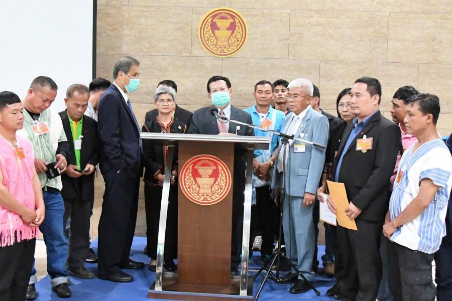 รองประธานคณะกรรมาธิการการที่ดิน ทรัพยากรธรรมชาติ และสิ่งแวดล้อม คนที่สอง และ รองประธานคณะกรรมาธิการ คนที่หก พร้อมคณะ รับยื่นหนังสือจาก นายกองค์การบริหารส่วนตำบลเมืองยวมใต้ จ.แม่ฮ่องสอน เรื่องขอคัดค้านการจัดตั้งอุทยานแห่งชาติ แม่สะเรียง จ.แม่ฮ่องสอน