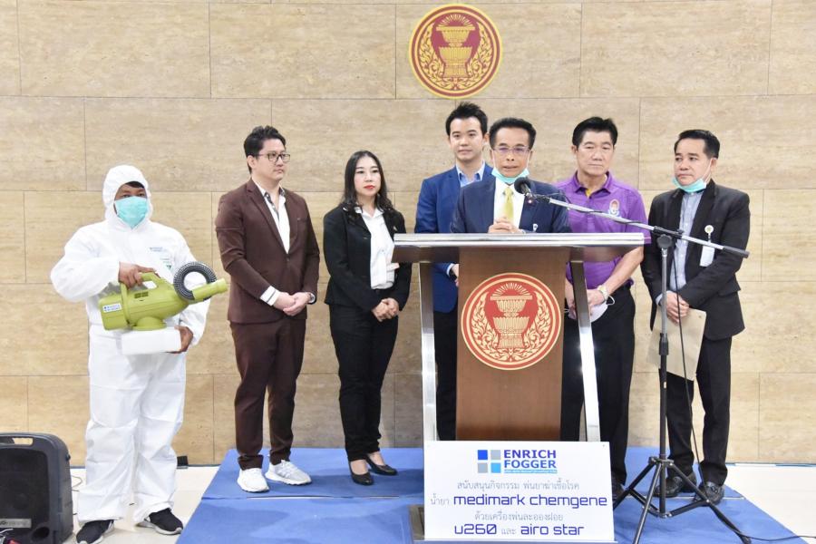 เจ้าของบริษัท ENRICH FOGGER แถลงข่าวการทำความสะอาดบริเวณห้องประชุมและพื้นที่