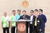 นายสมศักดิ์ พันธ์เกษม ประธานคณะกรรมาธิการการเงิน การคลัง สถาบันการเงินและตลาดการเงิน และนายฉลาด ขามช่วง กรรมาธิการที่ปรึกษา รับยื่นหนังสือจากนายสุครีพ บุญชุ่ม นายกสมาคมชาวไร่ยาสูบ จังหวัดสุโขทัย