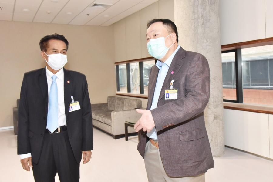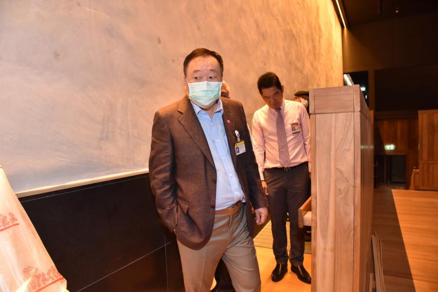 จากนั้น ตรวจสอบความเรียบร้อยบริเวณชั้น ๒ ได้แก่ ห้องอาหารสมาชิกฯ ห้องประชุมพระสุริยัน