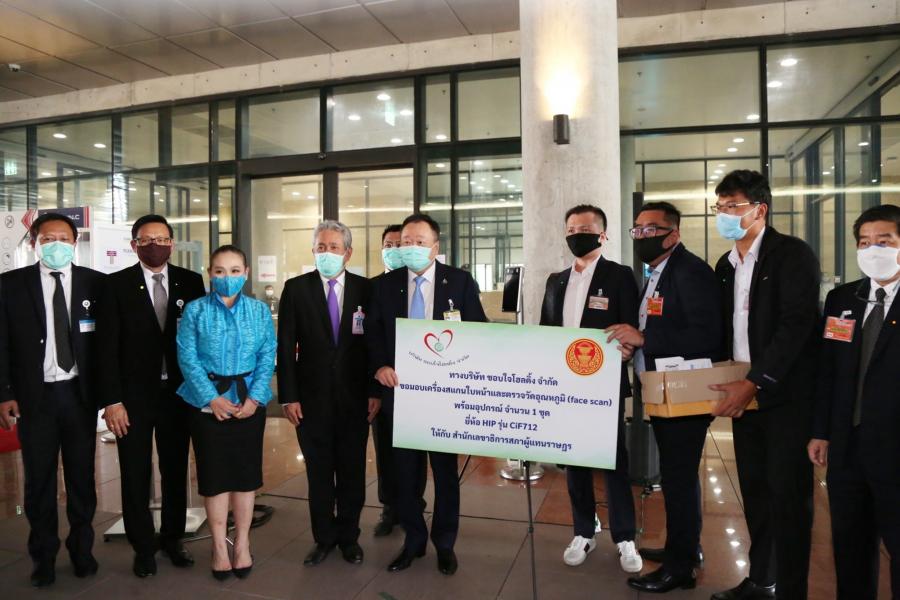 รองประธานสภาผู้แทนราษฎร คนที่หนึ่ง รับมอบเครื่องสแกนใบหน้าและตรวจวัดอุณหภูมิ (Face Scan) พร้อมอุปกรณ์ จำนวน ๑ ชุด จากกรรมการผู้จัดการบริษัทชอบใจ โฮลดิ้ง จำกัด ขอนแก่น