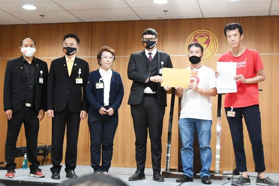 ปฏิบัติตามคำแนะนำของเจ้าหน้าที่สาธารณสุขอย่างเคร่งครัด จากนั้น นายรังสิมันต์ โรม ได้รับยื่นหนังสือ