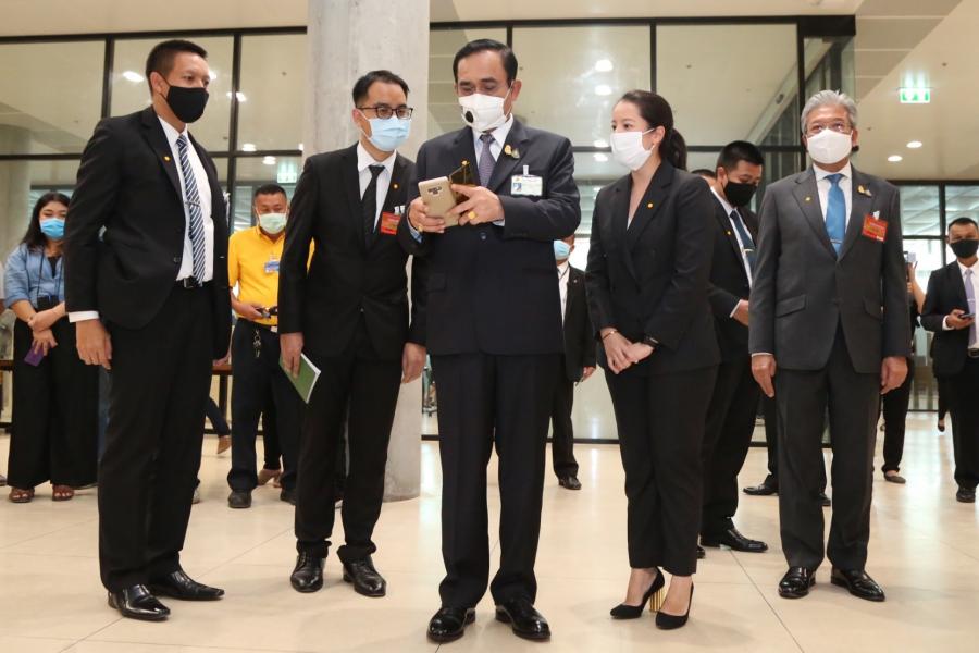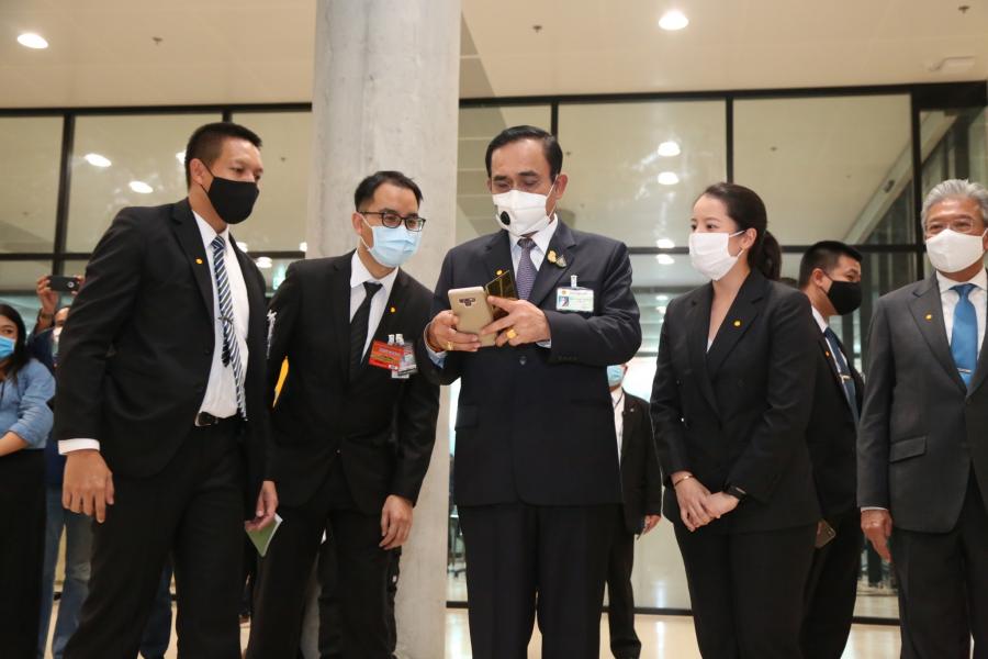 ทั้งนี้ พล.อ.ประยุทธ์ จันทร์โอชา นายกรัฐมนตรี ได้สแกน QR Code เพื่อบันทึกประวัติการเข้าออกอาคาร