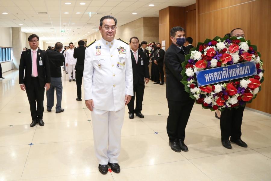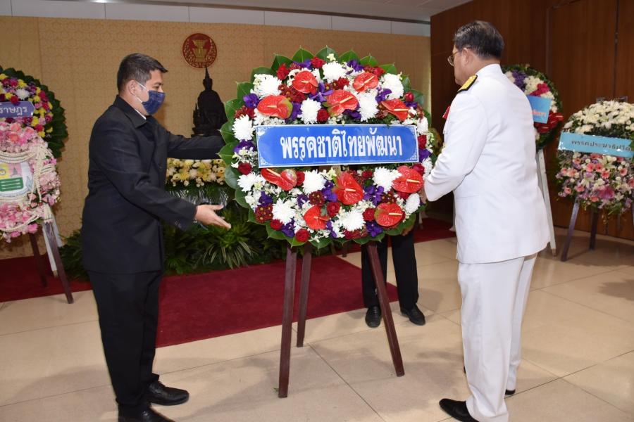 นายนิกร จำนง สมาชิกสภาผู้แทนราษฎร และผู้อำนวยการพรรคชาติไทยพัฒนา วางพวงมาลา