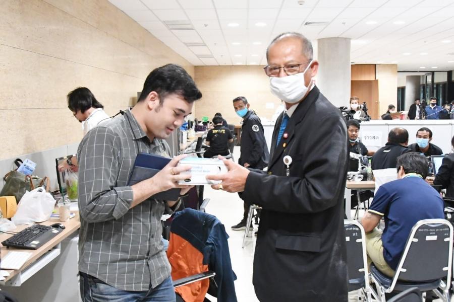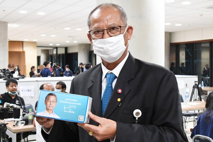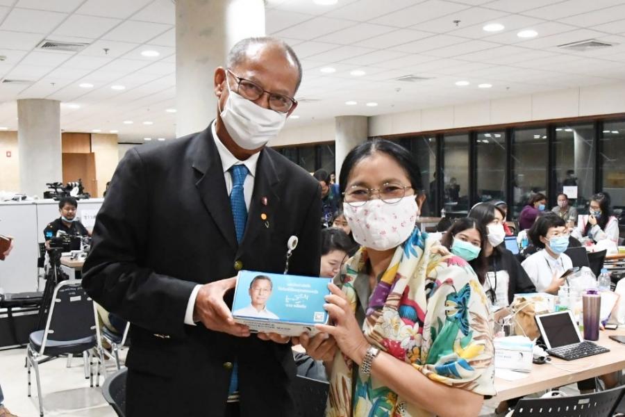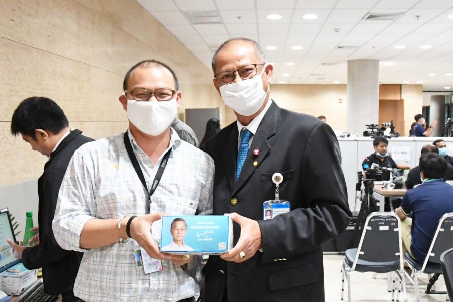 อินทวิเชียร ผู้ช่วยเลขานุการประธานสภาผู้แทนราษฎร นำหน้ากากอนามัยซึ่ง นายชวน หลีกภัย
