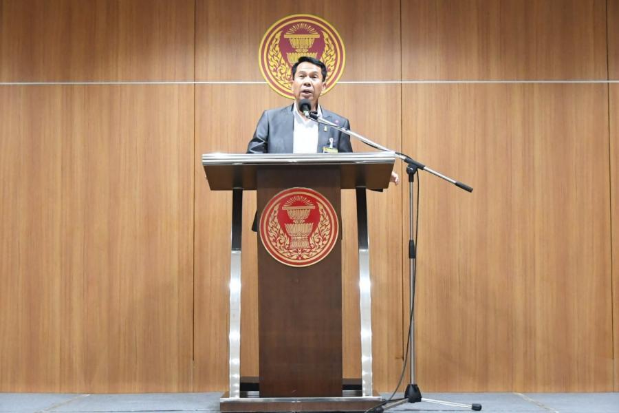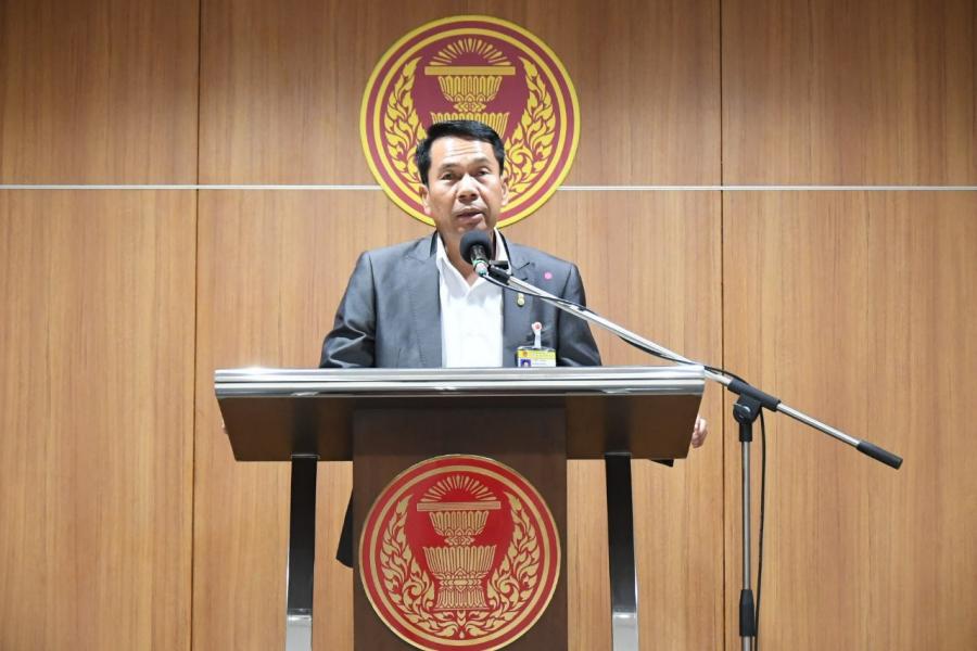 นายสุทิน คลังแสง ส.ส.พรรคเพื่อไทย ในฐานะประธานคณะกรรมการประสานงานพรรคร่วมฝ่ายค้าน แถลงข่าว