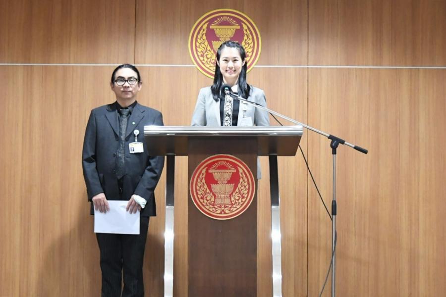 น.ส.พัชรินทร์ ซำศิริพงษ์ และนายธัญวัจน์ กมลวงศ์วัฒน์ โฆษกคณะ กมธ. กิจการเด็ก เยาวชน สตรี ผู้สูงอายุ ผู้พิการกลุ่มชาติพันธุ์ และผู้มีความหลากหลายทางเพศ แถลงข่าวผลการประชุมคณะ กมธ.