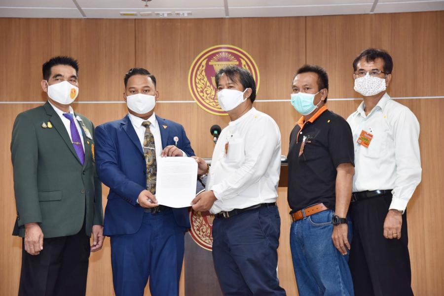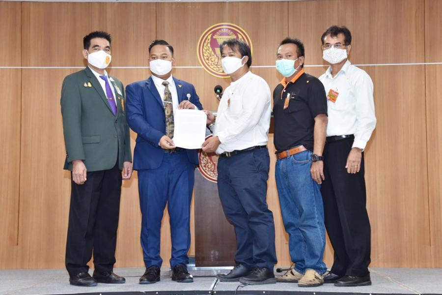 และนายทองแดง เบ็ญจะปัก ส.ส. พรรคก้าวไกล รับยื่นหนังสือจาก นายอดิศร เกิดมงคล