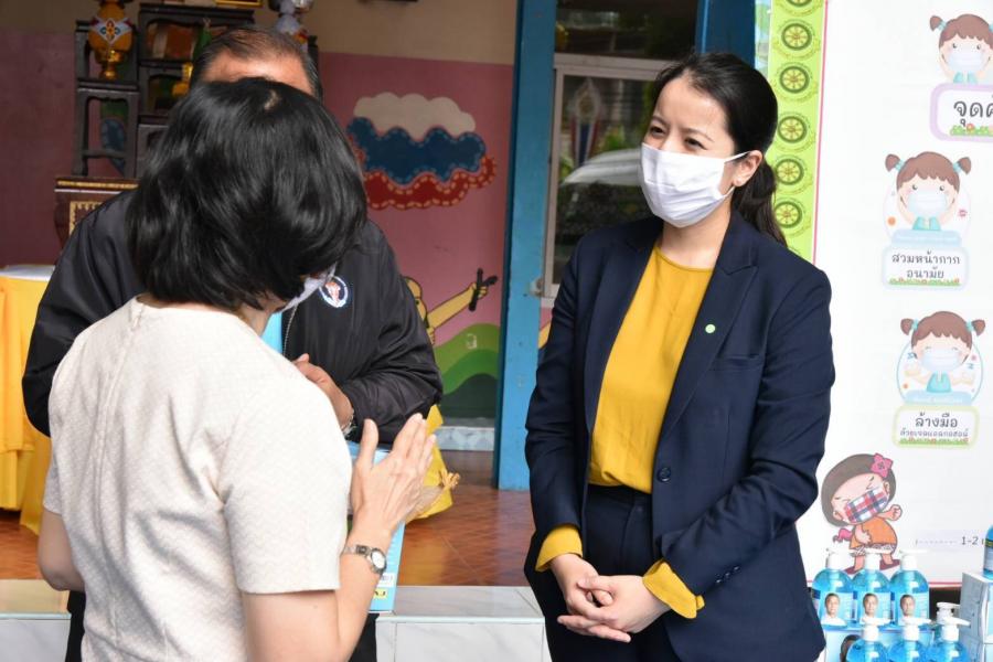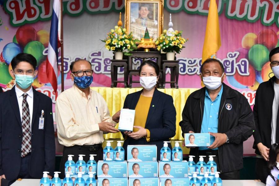 นางสาวศิริภา อินทวิเชียร ผู้ช่วยเลขานุการประธานสภาผู้เเทนราษฎร เดินทางไปมอบเครื่องวัดอุณหภูมิ เเอลกอฮอล์เจล เเละหน้ากากอนามัย ให้เเก่โรงเรียนต่าง ๆ ในกรุงเทพมหานคร