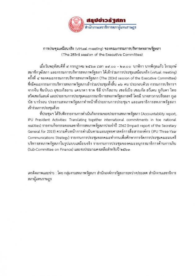 บริหารสหภาพรัฐสภา (The 283rd session of the Executive Committee)