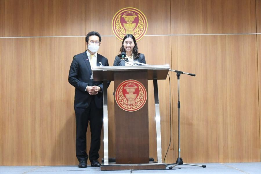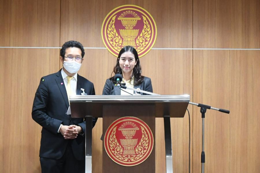 นางสาวเพชรชมพู กิจบูรณะ และนายวรภพ วิริยะโรจน์ โฆษกคณะ กมธ. วิสามัญพิจารณาศึกษาผลกระทบจากการเข้าร่วมความตกลงที่ครอบคลุมและก้าวหน้าสำหรับหุ้นส่วนทางเศรษฐกิจภาคพื้นแปซิฟิก (CPTPP) แถลงข่าว