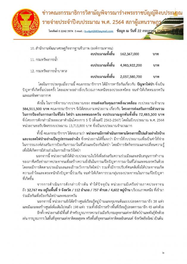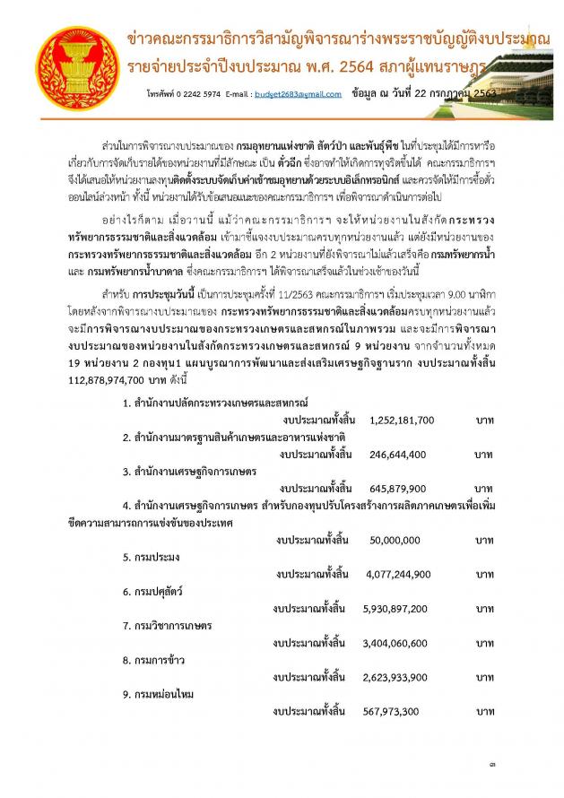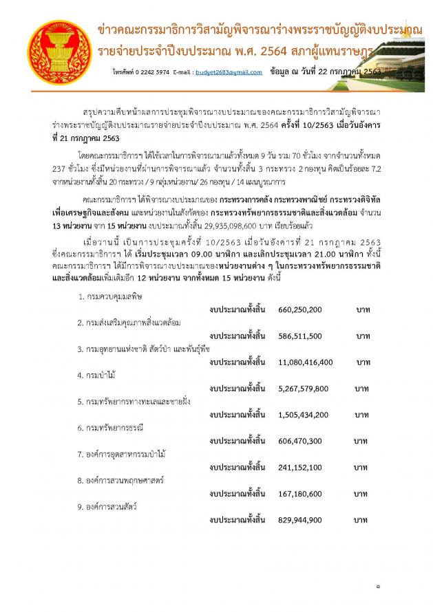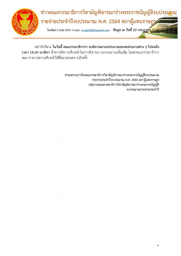 โฆษกคณะกรรมาธิการวิสามัญพิจารณาร่าง พ.ร.บ. งบประมาณรายจ่ายประจำปีงบประมาณ พ.ศ. ๒๕๖๔แถลงข่าวผลการประชุมคณะ กมธ.