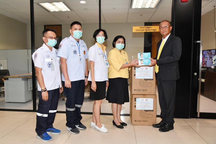 มอบหน้ากากอนามัยให้กับนางสาวรุ่งนภา ขันธิโชติ ผู้อำนวยการสำนักบริการทางการ