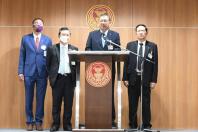 รองประธานคณะกรรมาธิการวิสามัญพิจารณาศึกษาแนวทางการบริหาร จัดการลุ่มน้ำทั้งระบบ คนที่หนึ่ง พร้อมด้วย นายอุบลศักดิ์ บัวหลวงงาม รองประธานคณะกรรมาธิการ คนที่สอง และนายจาตุรงค์ เพ็งนรพัฒน์ โฆษกคณะ กมธ. แถลงข่าว