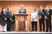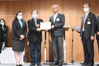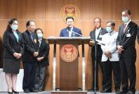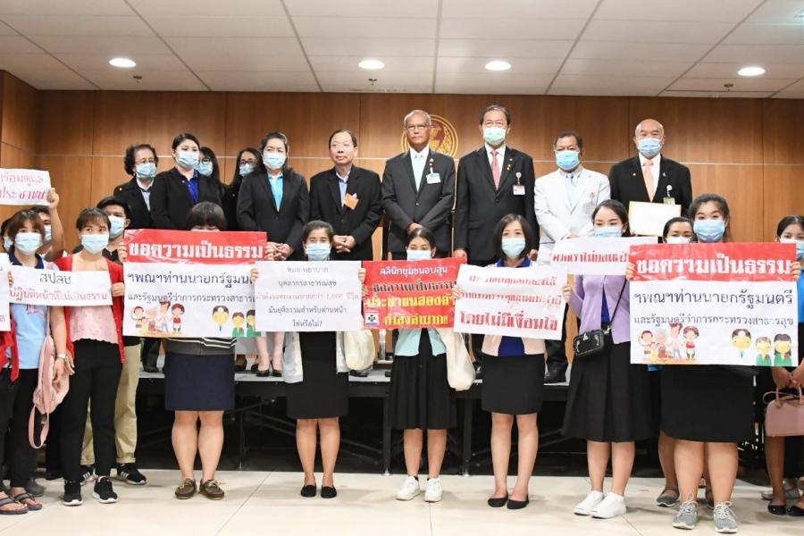 นายสมพงษ์ อมรวิวัฒน์ ผู้นำฝ่ายค้านในสภาผู้แทนราษฎร พร้อมด้วยนายสมบรูณ์ อุทัยเวียนกุล เลขานุการประธานสภาผู้แทนราษฎร และนายประเดิมชัย บุญช่วยเหลือ เลขานุการคณะ กมธ.การป้องกันและปราบปรามการทุจริตประพฤติมิชอบ รับยื่นหนังสือจาก นพ.พงษ์ศักดิ์ ศรีมุกษิกโพธิ์ ในฐานะตัวแทน กลุ่มผู้ประกอบการคลินิกชุมชนอบอุ่น จำนวน ๗๔ คลินิก