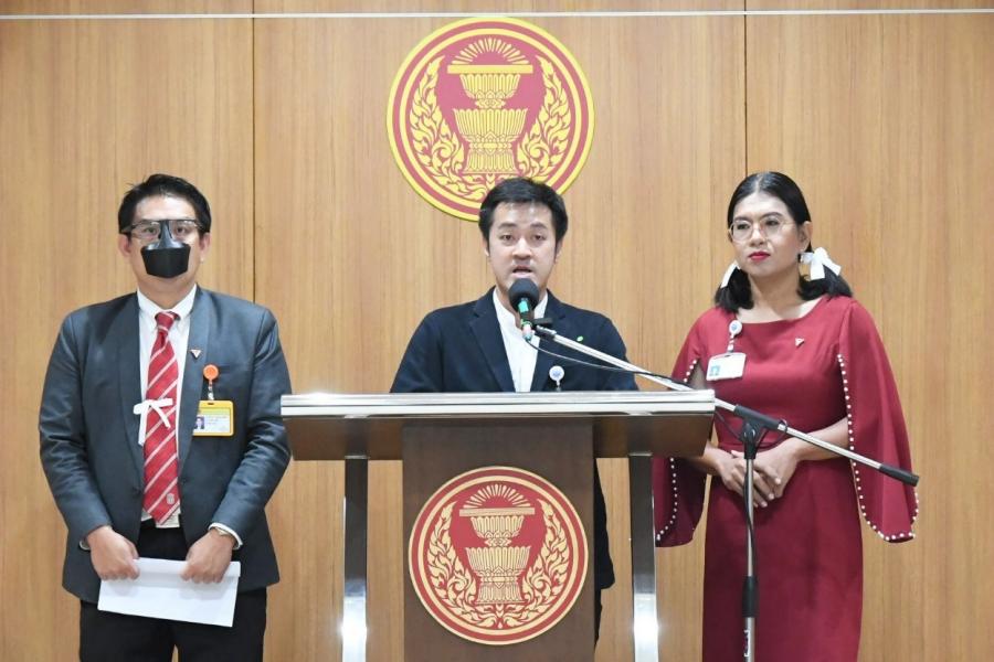 และนายธัญญ์วาริน สุขะพิสิษฐ์ ส.ส.พรรคก้าวไกล แถลงข่าวกรณี