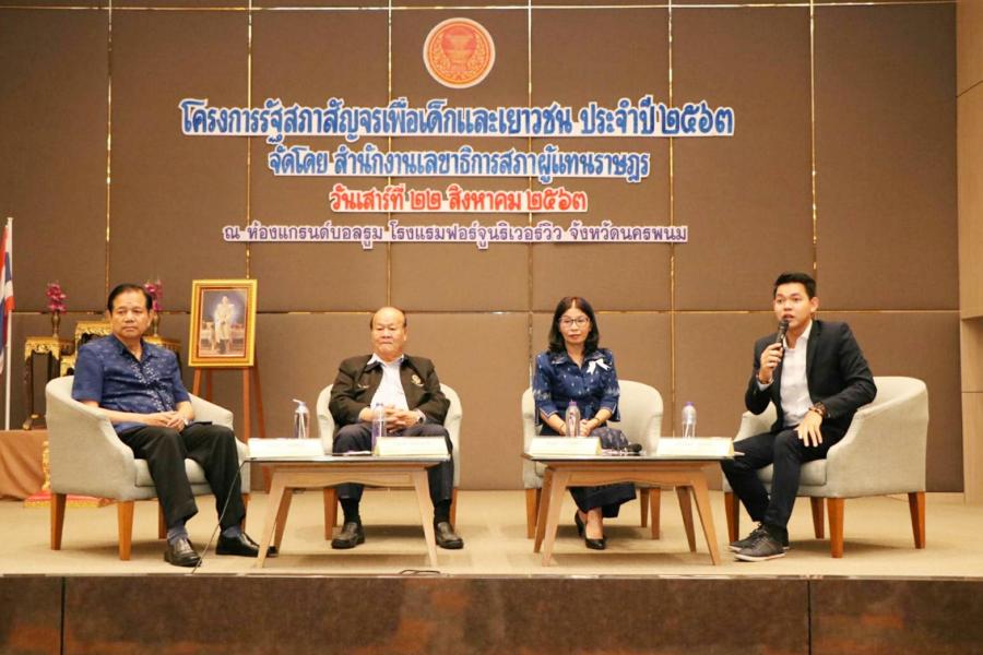สมาชิกสภาผู้แทนราษฎร จ.นครพนม ร่วมเป็นวิทยากรในการเสวนาวิชาการ เรื่อง "บทบาทของเยาวชนกับการมีส่วนร่วมทางการเมือง"