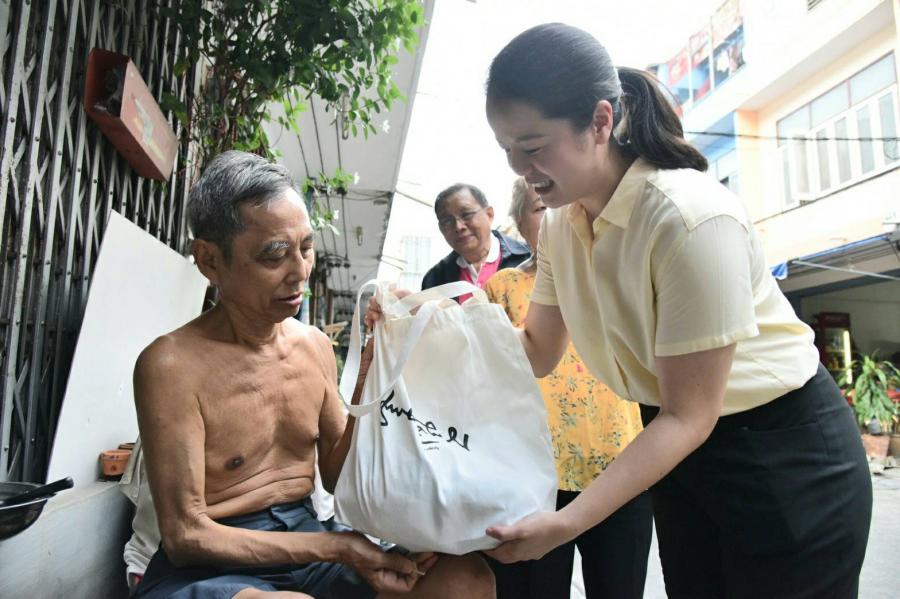 ประธานสภาผู้แทนราษฎร มอบหมายให้ น.ส.ศิริภา อินทวิเชียร ผู้ช่วยเลขานุการประธานสภาผู้แทน ราษฎร นำถุงยังชีพมอบให้กับพี่น้องประชาชน เพื่อนำไปใช้ประโยชน์ ณ ซอยราชปรารภ ๑๘