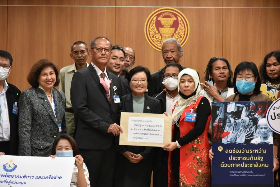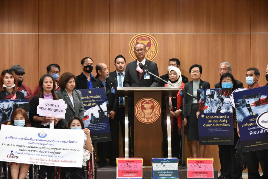 เลขานุการประธานสภาผู้แทนราษฎร และคณะทำงานประธานสภาผู้แทนราษฎร รับยื่นร่าง พ.ร.บ. ส่งเสริมและพัฒนาองค์กรภาคประชาสังคม พ.ศ. .... และรายชื่อผู้เข้าชื่อเสนอกฎหมายจำนวน ๑๒,๒๙๙ รายชื่อ จากตัวแทนเครือข่ายภาคประชาสังคม