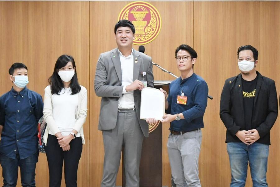นายเท่าพิภพ ลิ้มจิตรกร ส.ส. พรรคก้าวไกล รับยื่นหนังสือจากตัวแทนเครือข่ายผู้ประกอบกิจการคราฟต์เบียร์