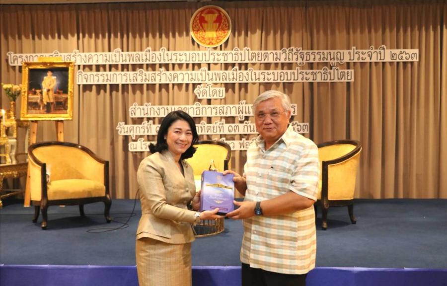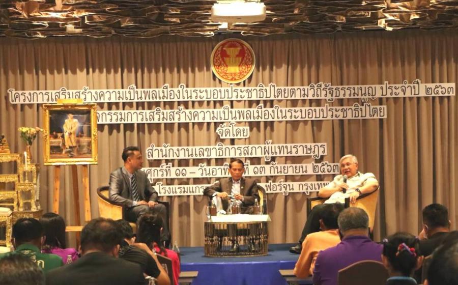 การเสวนาเรื่อง "การเสริมสร้างเสถียรภาพระบบการเมืองไทยเพื่อลดความเหลื่อมล้ำในสังคม" ในโครงการเสริมสร้างความเป็นพลเมืองในระบอบประชาธิปไตยตามวิถีรัฐธรรมนูญ ประจำปี ๒๕๖๓ กิจกรรม การเสริมสร้างความเป็นพลเมือง ในระบอบประชาธิปไตย