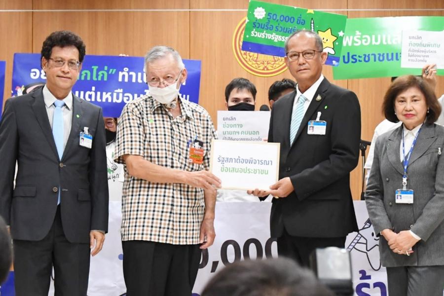 ผู้อำนวยการโครงการอินเทอร์เน็ตเพื่อกฎหมายประชาชน(iLaw) และคณะ โดยทางคณะขอเสนอร่างรัฐธรรมนูญฉบับประชาชน พร้อมรายชื่อผู้สนับสนุนจำนวน กว่า ๗๐,๐๐๐ ชื่อเพื่อขอให้สภาผู้แทนราษฎรนำร่างแก้ไขเพิ่มเติมรัฐธรรมนูญ ฉบับดังกล่าว พิจารณาร่วมกับร่างแก้ไขรัฐธรรมนูญฉบับอื่น ๆ ที่ได้บรรจุ ในระเบียบวาระแล้ว สำหรับร่างรัฐธรรมนูญฉบับประชาชนมีสาระสำคัญ คือยกเลิกและแก้ไขในประเด็น ดังนี้ ๑. ยกเลิกช่องทางในการได้มาซึ่งนายกรัฐมนตรีคนนอก ๒. ยกเลิกแผนยุทธศาสตร์ชาติ ๓. ยกเลิกแผนปฏิรูปประเทศ ๔. ยกเลิกที่มาของผู้บริหารท้องถิ่นรูปแบบพิเศษที่ไม่ได้มาจากการเลือกตั้ง