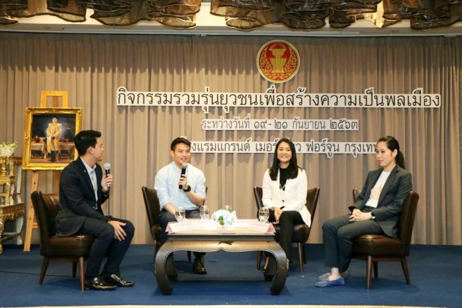 วันเสาร์ที่ ๑๙ กันยายน ๒๕๖๓ เวลา ๐๙.๓๐ นาฬิกา ณ โรงแรมแกรนด์ เมอร์เคียว กรุงเทพฯ ฟอร์จูน สำนักประชาสัมพันธ์จัดโครงการส่งเสริมและสนับสนุนความเป็นพลเมืองในระบอบประชาธิปไตย เพื่อพัฒนาประชาธิปไตยให้ยั่งยืน กิจกรรมรวมรุ่นยุวชนเพื่อการสร้างความเป็นพลเมือง ประจำปี ๒๕๖๓ โดยในเวลา ๑๐.๐๐-๑๒.๐๐ น. นายภราดร ปริศนานันทกุล สมาชิกสภาผู้แทนราษฎร จังหวัดอ่างทอง พรรคภูมิใจไทย น.ส.ธีรรัตน์ สำเร็จวาณิชย์ สมาชิกสภาผู้แทนราษฎร กรุงเทพมหานคร พรรคเพื่อไทย และน.ส.ธณิกานต์ พรพงษาโรจน์ สมาชิกสภาผู้แทนราษฎร กรุงเทพมหานคร พรรคพลังประชารัฐ ร่วมเสวนาเรื่อง "ยุวชนประชาธิปไตยกับการมีส่วนร่วมทางการเมือง" โดยมีนายธีร์วัฒน์ ชูรัตน์ พิธีกร และผู้ประกาศข่าว สถานีโทรทัศน์แห่งประเทศไทย กรมประชาสัมพันธ์ (NBT) ยุวชนประชาธิปไตย เป็นผู้ดำเนินรายการ โดยสมาชิกสภาผู้แทนราษฎรได้พูดถึง การเข้ามามีส่วนร่วมทางการเมืองของ เยาวชนว่า บริบทของสังคมที่แตกต่างไปจากอดีต ทำให้เยาวชนรุ่นใหม่สามารถเข้าถึงข้อมูลได้มากกว่า เดิมกลุ่มเยาวชน นักเรียน และนักศึกษาในปัจจุบันเป็นกลุ่มที่จะขับเคลื่อน ผลักดันทำให้ประชาธิปไตย ให้เกิดความก้าวหน้า การที่สังคมเปิดกว้างมากขึ้น การเรียกร้องของคนรุ่นใหม่จึงเป็นเรื่องปกติ แต่การ จะเรียกร้องใด ๆ เพื่อให้เกิดการเปลี่ยนแปลงจะต้องมองประโยชน์สูงสุดสำหรับเรื่องการแก้ไขรัฐธรรมนูญ จะสามารถแก้ไขปัญหาได้หรือไม่นั้น วงเสวนาเห็นว่า เยาวชนสามารถเข้าร่วมได้ แต่ต้องมีการพูดคุย กันทั้งสองฝ่ายเพื่อให้เกิดข้อสรุปร่วมกัน และเห็นว่าทุกอย่างมีกฎ กติกา บางเรื่องต้องแยกให้ชัดว่า ต้องการอะไร และควรแก้ที่จุดที่เป็นปัญหา หลังจากนั้น นางจงเดือน สุทธิรัตน์ ผู้อำนวยการสำนักประชาสัมพันธ์ ได้มอบของที่ระลึกแก่สมาชิก สภาผู้แทนราษฎร และผู้ดำเนินรายการเพื่อแสดงความขอบคุณ
