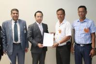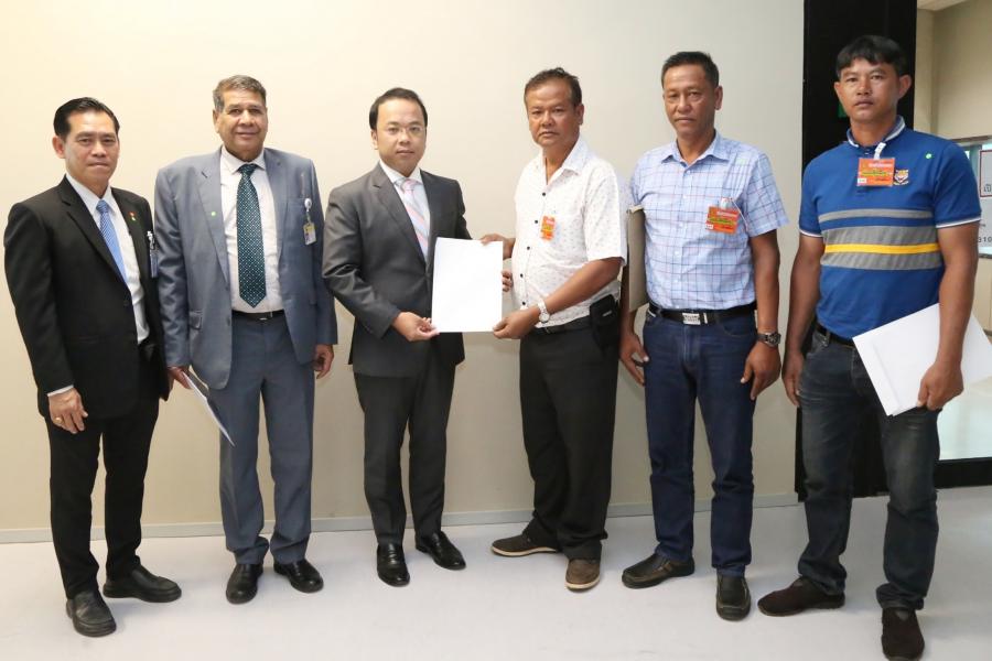 และ พ.ต.อ.สุรินทร์ ปาราเร่ ส.ส. พรรคประชาธิปัตย์ รับยื่นหนังสือจาก นายปรีชา กาซัน