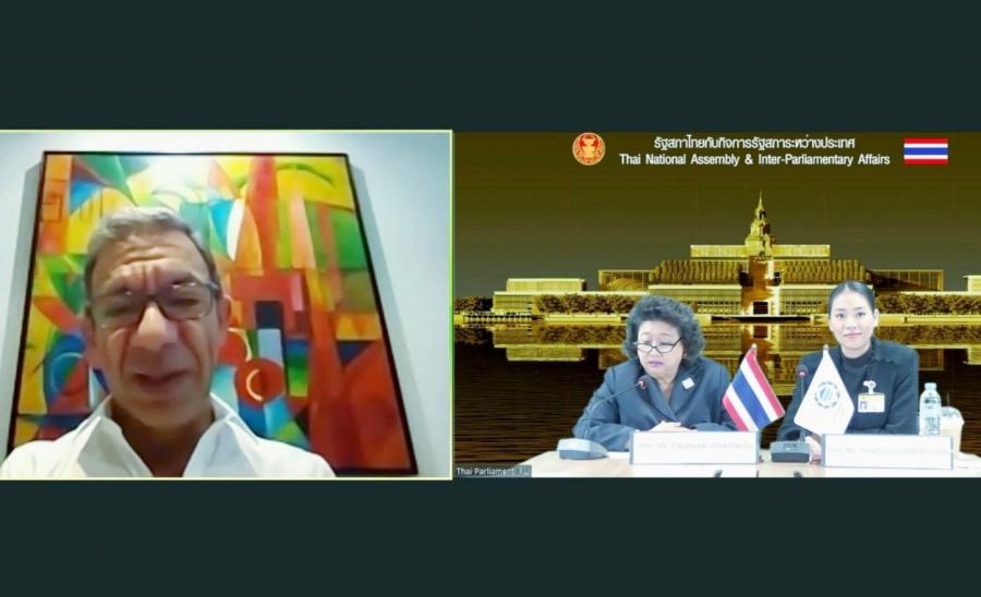 คณะผู้แทนรัฐสภาไทยในคณะมนตรีบริหารสหภาพรัฐสภา พบปะหารือผ่านสื่ออิเล็กทรอนิกส์ นาย Duarte Pacheco สมาชิกรัฐสภาโปรตุเกส ผู้สมัครรับเลือกตั้งตำแหน่งประธานสหภาพรัฐสภา หรือ ประธาน IPU