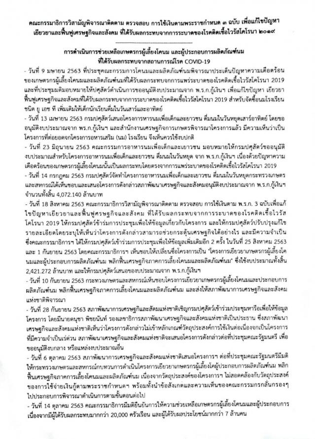ติดตามตรวจสอบการใช้เงินตามพระราชกำหนด ๓ ฉบับ เพื่อแก้ไขปัญหาเยียวยา