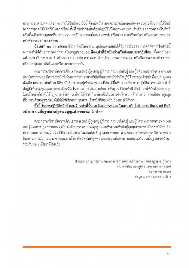 หากเด็ก เยาวชน นักเรียน นิสิต และนักศึกษาที่เข้าร่วมการชุมนุมถูกเจ้าหน้าที่ปฏิบัติ