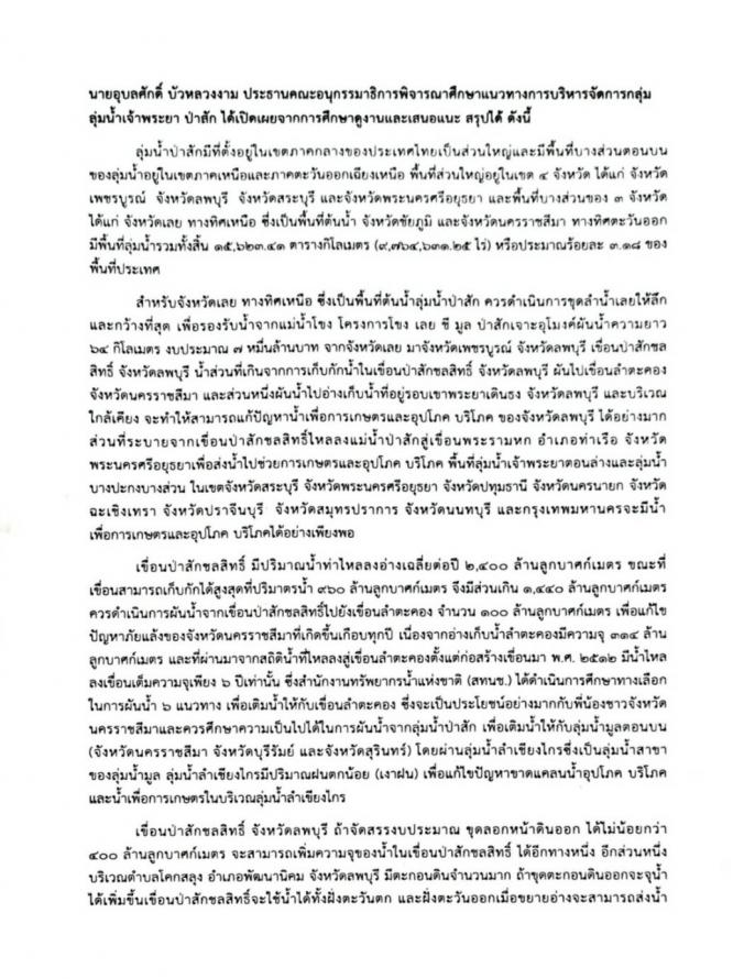 พิจารณาศึกษาแนวทางการบริหารจัดการกลุ่มลุ่มน้ำเจ้าพระยา ป่าสัก แถลงข่าว