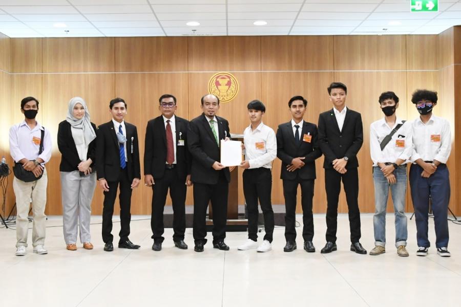 รับยื่นหนังสือจาก นายอับดุลเลาะ สิเดะ ตัวแทนนักศึกษาที่เข้าร่วมกิจกรรม