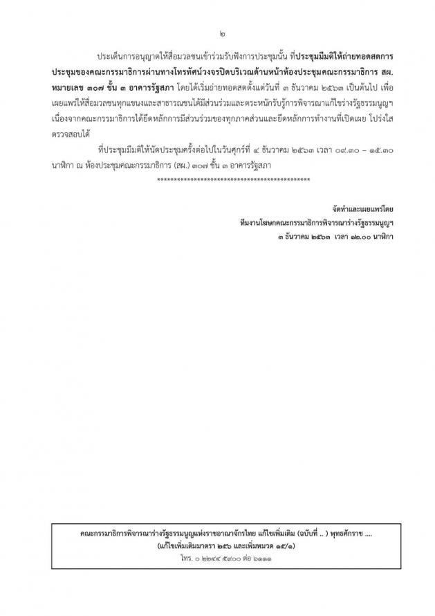 โฆษกคณะ กมธ. พิจารณาร่างรัฐธรรมนูญแห่งราชอาณาจักรไทย แก้ไขเพิ่มเติม (ฉบับที่ ..) พุทธศักราช ....(แก้ไขเพิ่มเติมมาตรา ๒๕๖ และเพิ่มหมวด ๑๕/๑) แถลงข่าว