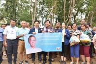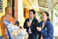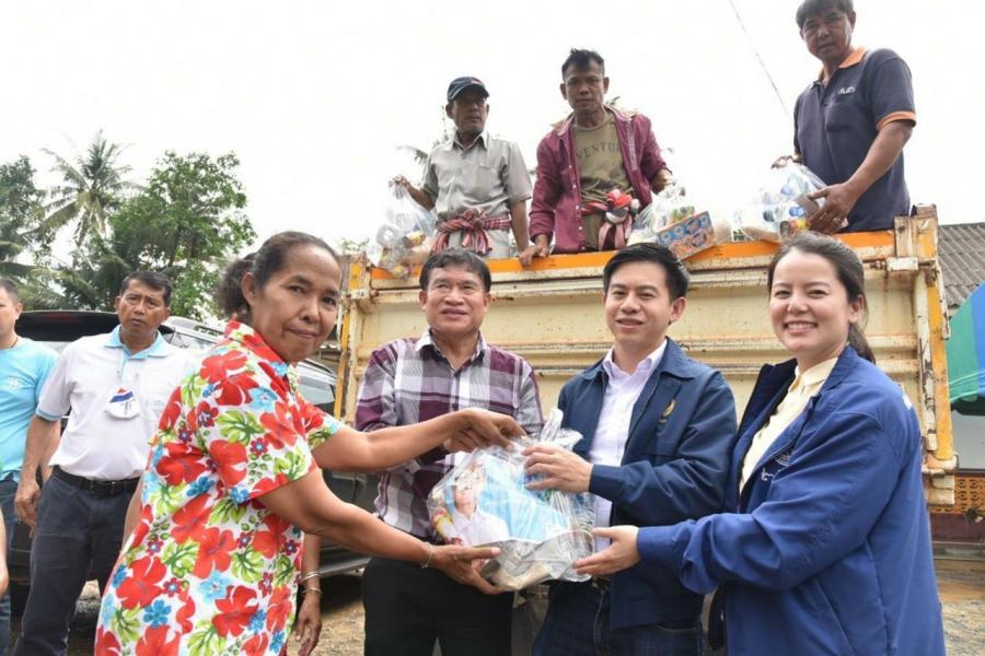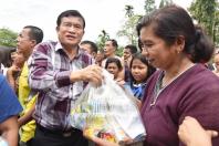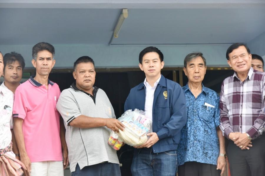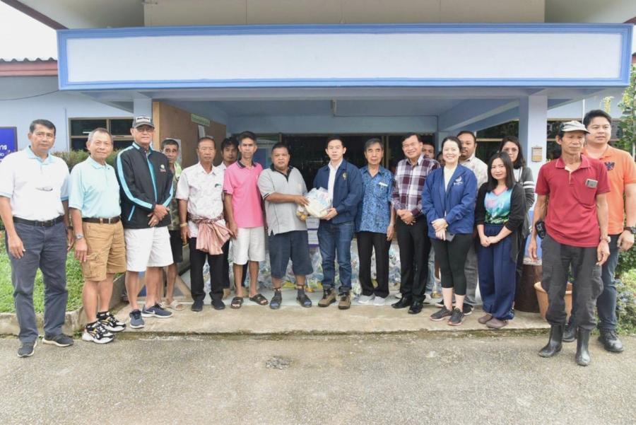 ให้กำลังใจ และมอบถุงยังชีพ ซึ่งได้รับการสนับสนุนจากมูลนิธิเพื่อการศึกษาและสังคมที่มีนายชวน