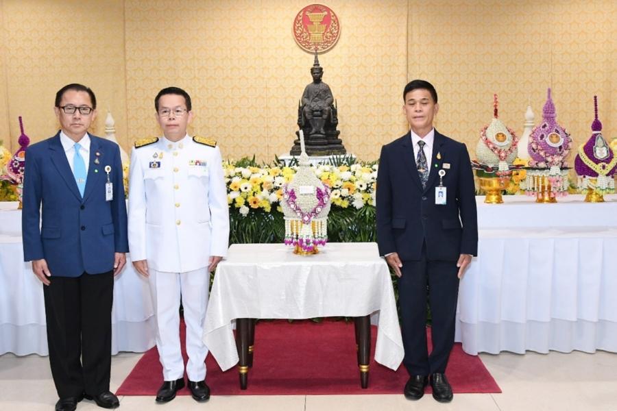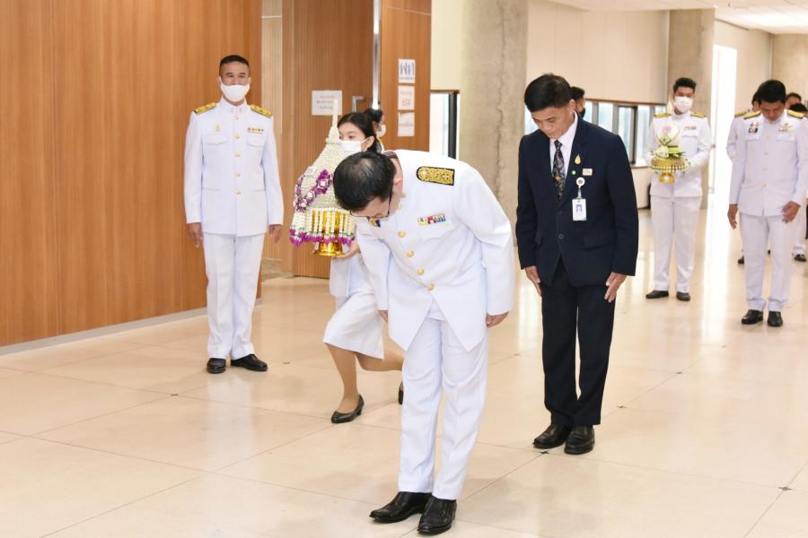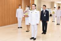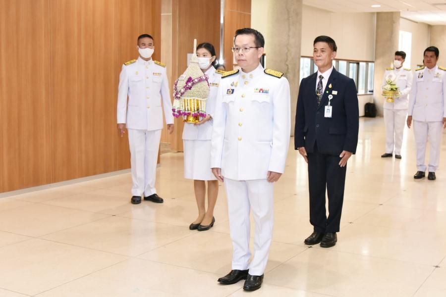 นายนิคม บุญวิเศษ สมาชิกสภาผู้แทนราษฎรพรรคพลังปวงชนไทย วางพานประดับพุ่มดอกไม้ถวายบังคม