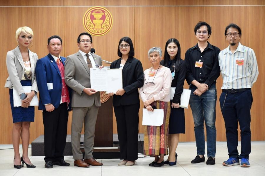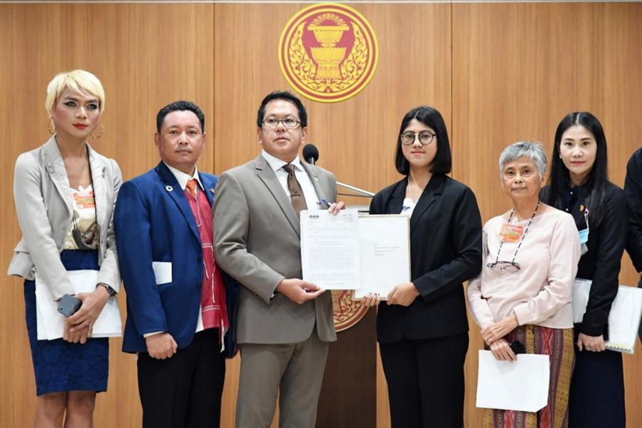 ประธานคณะกมธ. กิจการศาล องค์กรอิสระ องค์กรอัยการ รัฐวิสาหกิจ องค์การมหาชน และกองทุน และ น.ส.เบญจา แสงจันทร์ โฆษกคณะ กมธ. รับยื่นหนังสือจาก น.ส.ทิพอัปสร แก้วมณี ตัวแทนภาคประชาสังคม และคณะ