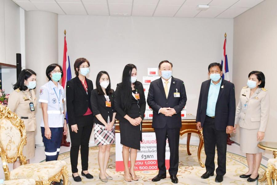รองประธานสภาผู้แทนราษฎร คนที่หนึ่ง รับมอบชุดตรวจแอนติบอดี้โควิด-๑๙ (Rapid Test) จำนวน ๑,๐๐๐ ชุด มูลค่า ๕๐๐,๐๐๐ บาท จาก น.ส.อนุตรา คล่องพิทยาพงษ์ ผู้อำนวยการฝ่ายการตลาด บริษัท เฟิร์มเมอร์ จำกัด น.ส.สิรินธร พึงเทอดธรรม ผู้จัดการฝ่ายผลิตภัณฑ์ น.ส.ณัฐพร ชาญศิริเจริญกูล นักเทคนิคการแพทย์