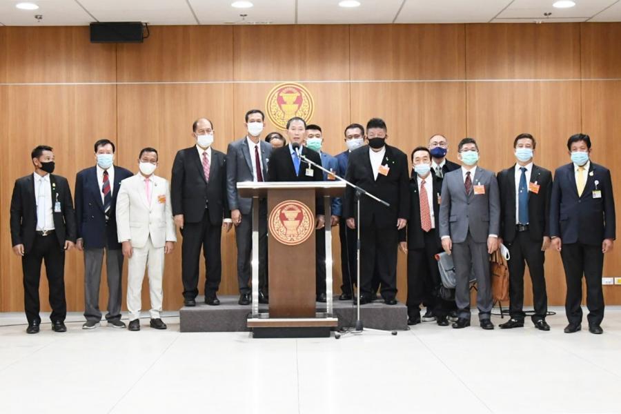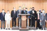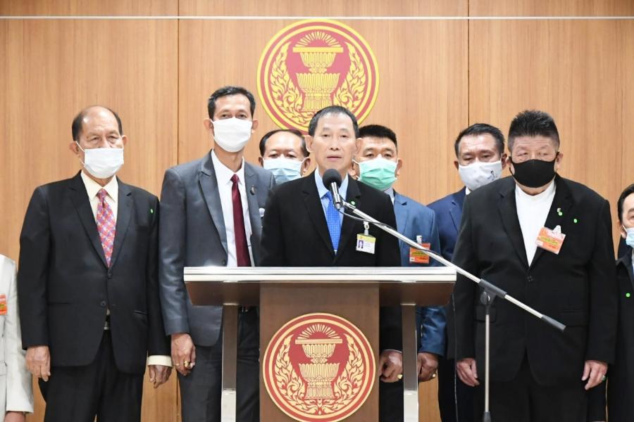 ประธานคณะกรรมาธิการวิสามัญพิจารณาศึกษาการขุดคลองไทยและการพัฒนาพื้นที่ระเบียงเศรษฐกิจภาคใต้ และคณะ แถลงข่าว ผลการประชุมของคณะ กมธ.