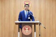นายชัยชนะ เดชเดโช สมาชิกสภาผู้แทนราษฎร จ.นครศรีธรรมราช พรรคประชาธิปัตย์ แถลงข่าว
