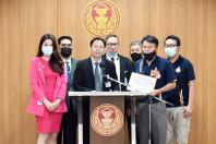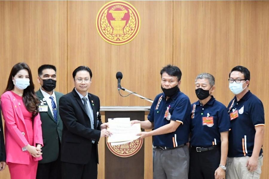 รองประธานคณะ กมธ.กิจการศาล องค์กรอิสระ องค์กรอัยการ รัฐวิสาหกิจ องค์การมหาชน และกองทุน คนที่สาม รับยื่นหนังสือจาก นายประเทืองวุฒิ ลิ้มรสสุคนธ์ ประธานที่ปรึกษาสภาองค์กรชุมชน เทศบาลเมือง คลองหลวง จ.ปทุมธานี
