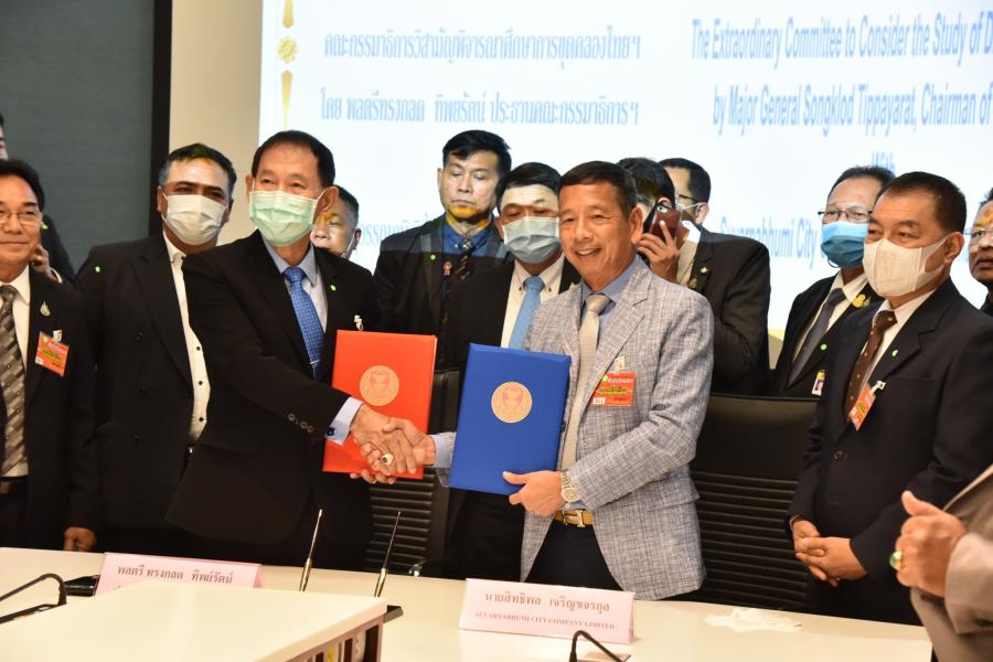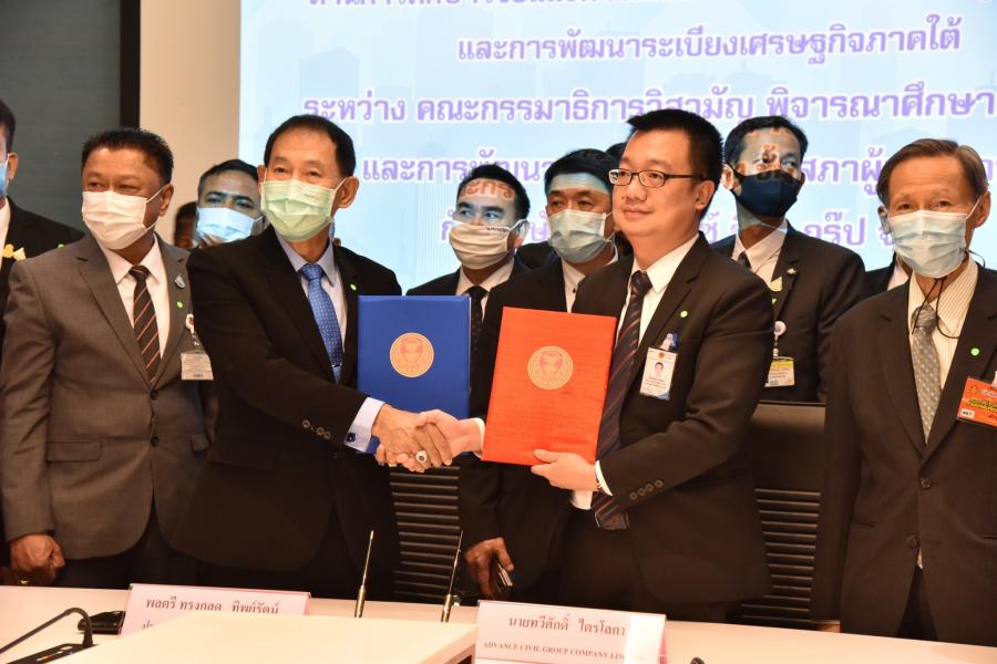 ประธานคณะ กมธ.วิสามัญพิจารณาศึกษาการขุดคลองไทยและพัฒนาพื้นที่ ระเบียงเศรษฐกิจภาคใต้ ลงนามบันทึกความเข้าใจ (MOU) ว่าด้วยความร่วมมือด้านการศึกษาวิจัยและการเผยแพร่ผลการศึกษาการขุดคลองไทยและ การพัฒนาระเบียงเศรษฐกิจภาคใต้ กับ 9 บริษัท ทั้งในประเทศและต่างประเทศ