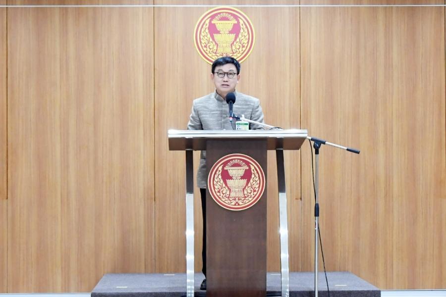 นายดิเรกฤทธิ์ เจนครองธรรม โฆษกคณะ กมธ. พิจารณาร่างรัฐธรรมนูญแห่งราชอาณาจักรไทย แก้ไขเพิ่มเติม (ฉบับที่ ..) พุทธศักราช .... แถลงข่าวเกี่ยวกับความคืบหน้าการดำเนินงานของคณะ กมธ.