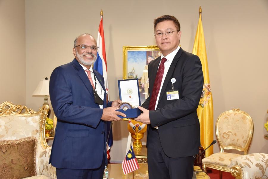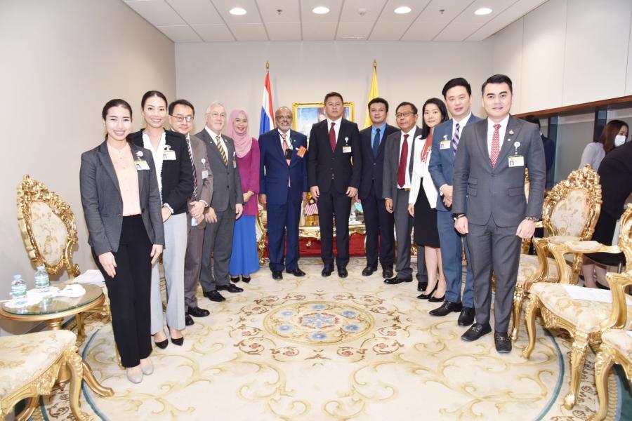 นายศราวุธ เพชรพนมพร ประธานคณะ กมธ. การต่างประเทศ และคณะ ให้การต้อนรับ ดาโต๊ะ โจจี ซามูเอล เอกอัครราชทูตมาเลเซียประจำประเทศไทย และคณะ
