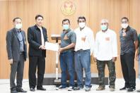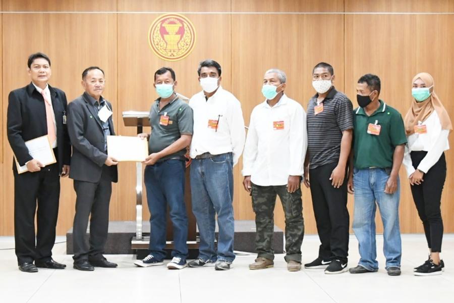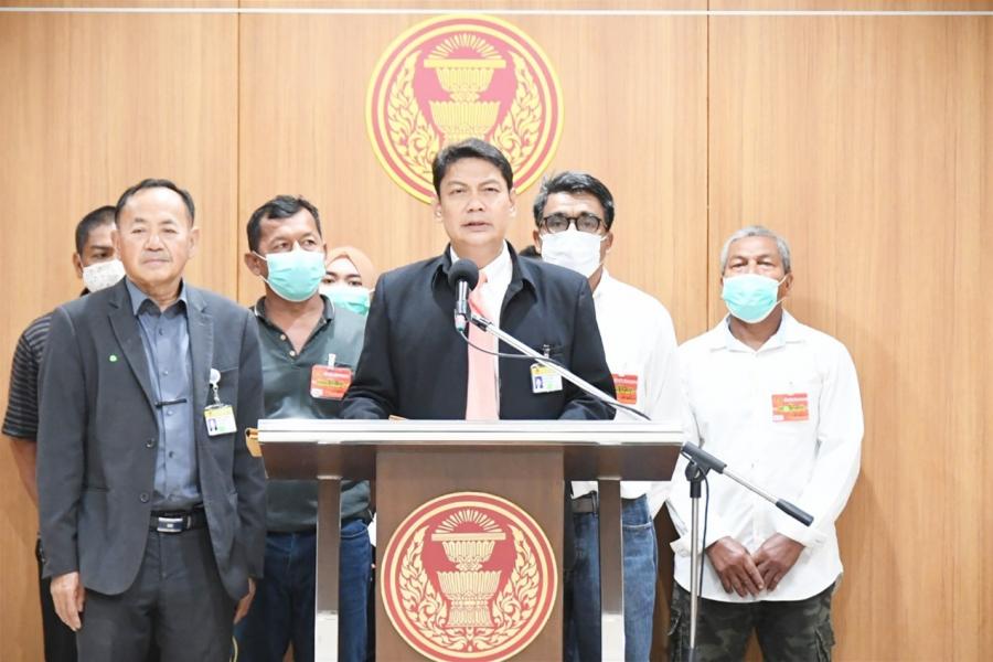 รองประธานคณะ กมธ. วิสามัญพิจารณาศึกษาแนวทางการแก้ไขปัญหาคลื่นทะเลกัดเซาะชายฝั่งและการพัฒนาทรัพยากรธรรมชาติทางทะเลอย่างเป็นระบบ คนที่สาม และนายสมชาย ฝั่งชลจิตร รองประธานคณะ กมธ. การที่ดิน ทรัพยากรธรรมชาติและสิ่งแวดล้อม คนที่สี่ รับยื่นหนังสือจาก นายพิเชษฐ์ ปานดำ สมาชิกกลุ่มอนุรักษ์ป่าชายเลนชุมชนบ้านอ่าวกุ้งและคณะ