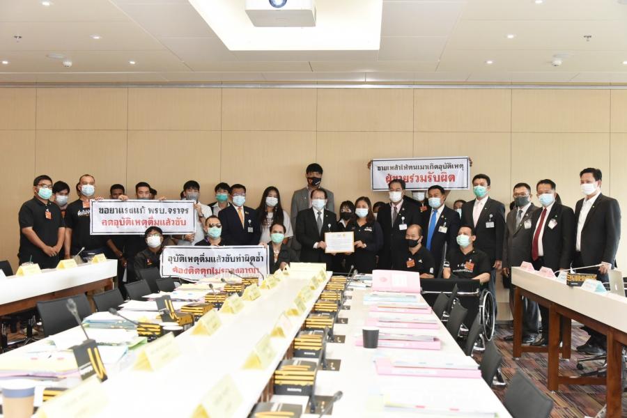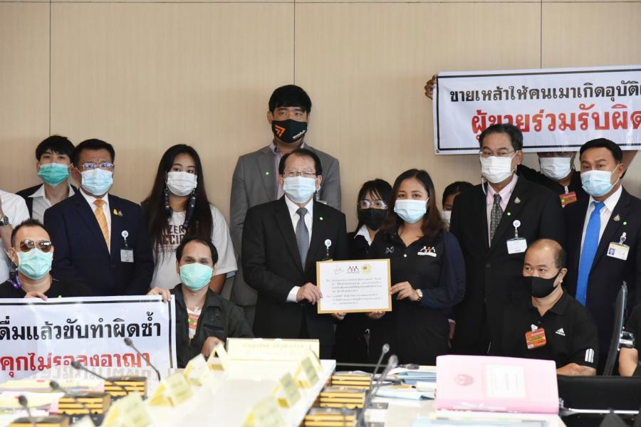 จากนั้นในเวลา 10.30 นาฬิกา นายสุรสิทธิ์ นิธิวุฒิวรรักษ์ ประธานคณะ กมธ. วิสามัญพิจารณาร่างพระราชบัญญัติจราจรทางบก (ฉบับที่ ..) พ.ศ. .... รับยื่นจดหมายเปิดผนึก จากน.ส.เครือมาศ ศรีจันทร์ ผู้ประสานงานเครือข่ายพัฒนาคุณภาพชีวิต และนายเจษภา แย้มสบาย ประธานเครือข่ายเมาแล้วขับ กรุงเทพฯ พร้อมด้วยเครือข่ายเยาวชนลดปัจจัยเสี่ยงและภาคี เพื่อเรียกร้องให้เพิ่มโทษกรณีเมาแล้วขับทำความผิดซ้ำ ต้องติดคุกสถานเดียว โดยไม่รอลงอาญา ส่วนผู้ที่ขายให้คนเมาแล้วก่อเหตุต้องมีส่วนรับผิดร่วมด้วย เพื่อสร้างความตระหนัก หยุดความสูญเสียบนท้องถนน
